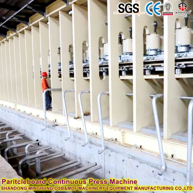 Équipement de base: il s'agit du 'Heart ' de la ligne de production. Il forme en continu les tapis OSB en appliquant une température et une pression élevées pour consolider les brins collés (lay-up orientés) dans une bande de planche continue.